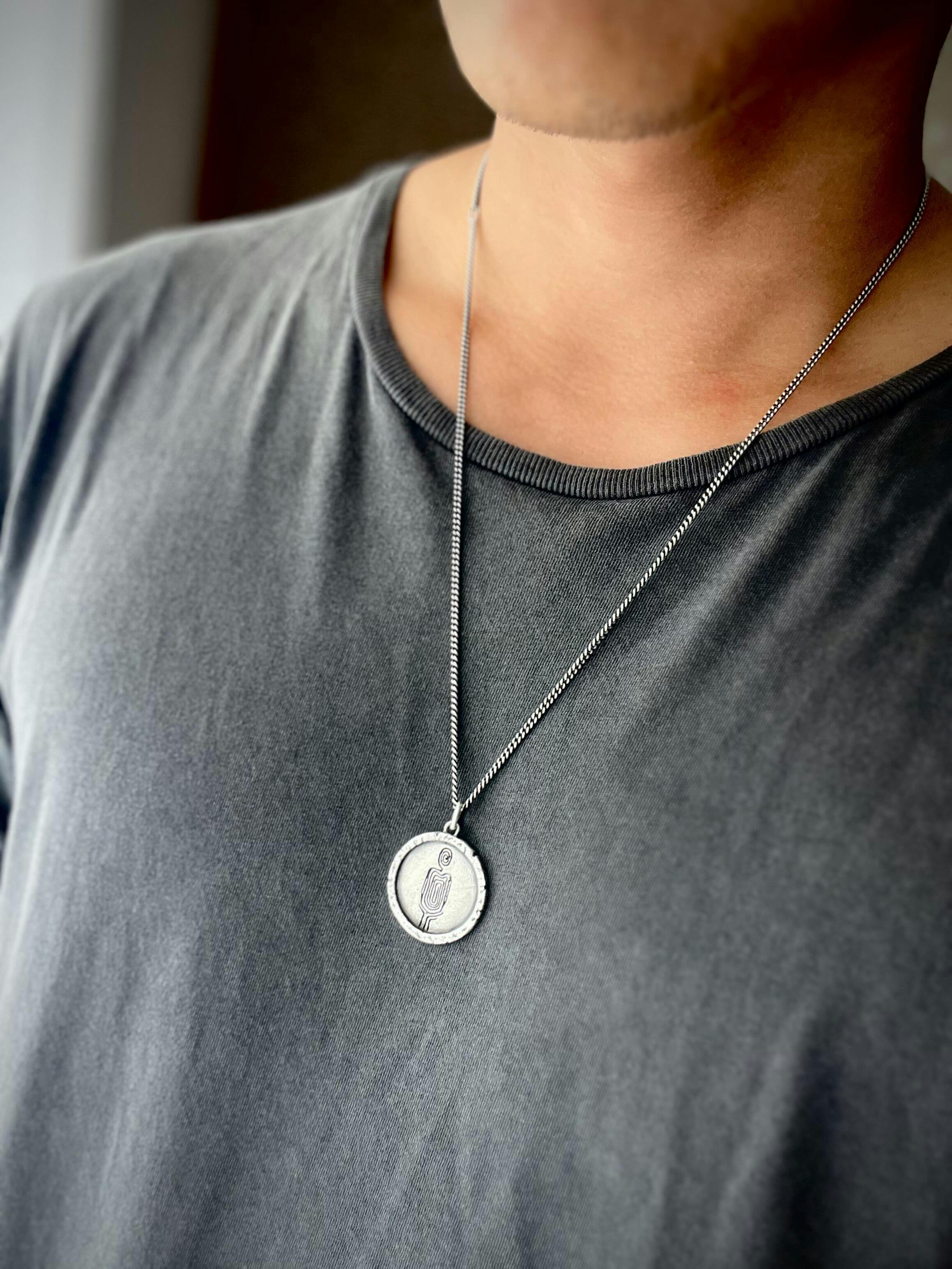 Inspired by some books of Hermann Hesse, our Eloquent pendant, crafted from 925 recycled silver, comes with a 65cm or 75cm silver chain. Each piece is handmade with meticulous craftsmanship, ensuring the Eloquent Pendant's unisex design suits and fits everyone.
